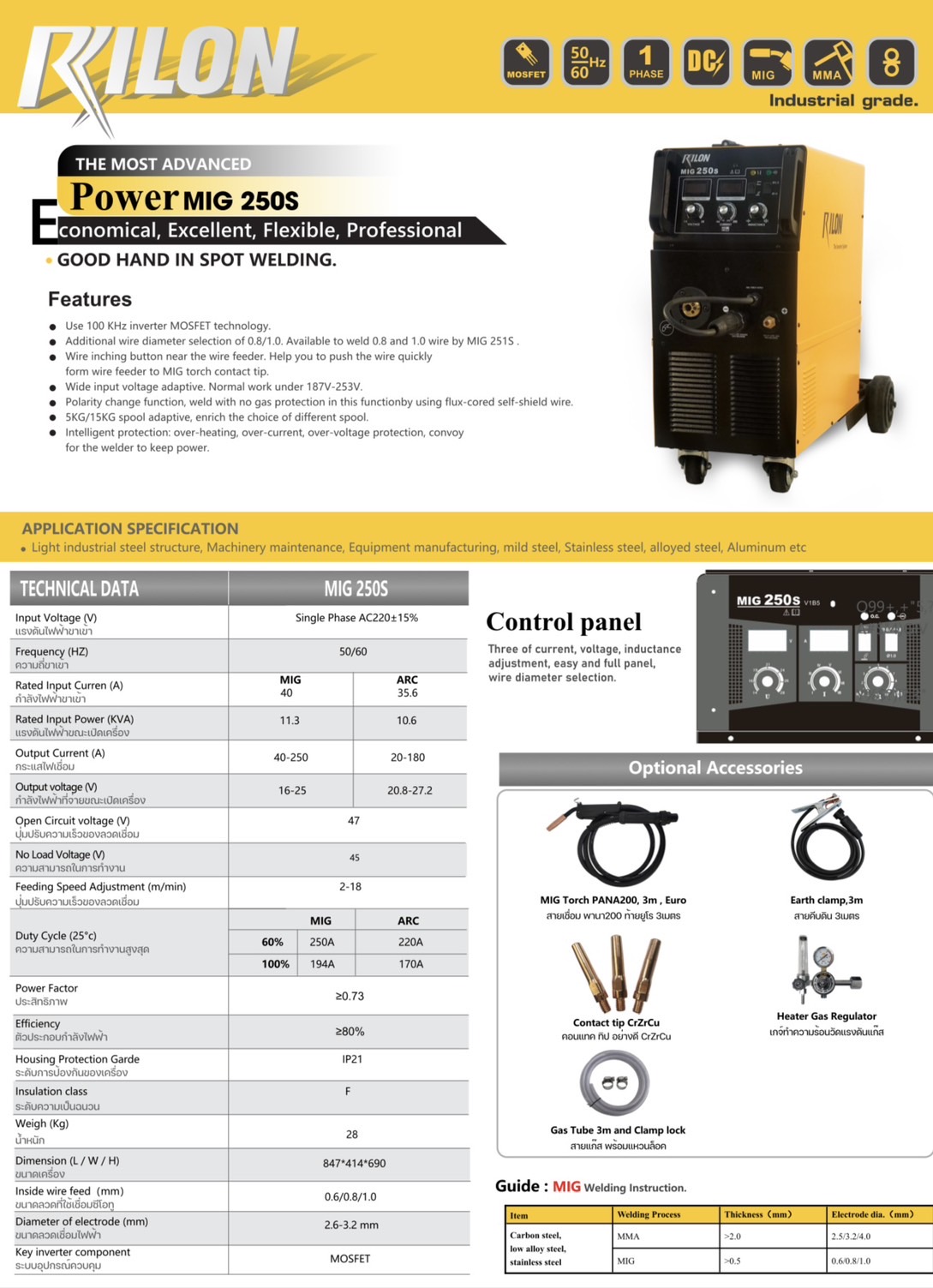 #เครื่องเชื่อมMIG250S 220V 250A ใช้ลวดเชื่อม 0.8-1.0มิล แบรนRILON #สินค้ามือ1อุปกรณ์ครบชุดยกเว้นถังก๊าส -สายเชื่อมMIG PANA 3เมตร -สายดิน -สายก๊าส -เกจ์CO2 -อะไหล่หัวเชื่อม -หน้ากากเชื่อมแบบสวมหัว -น้ำยาNPO