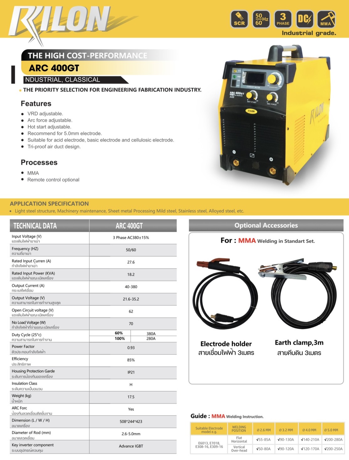 เครื่องเชื่อมไฟฟ้า ARC400GT 380V RILON 400A